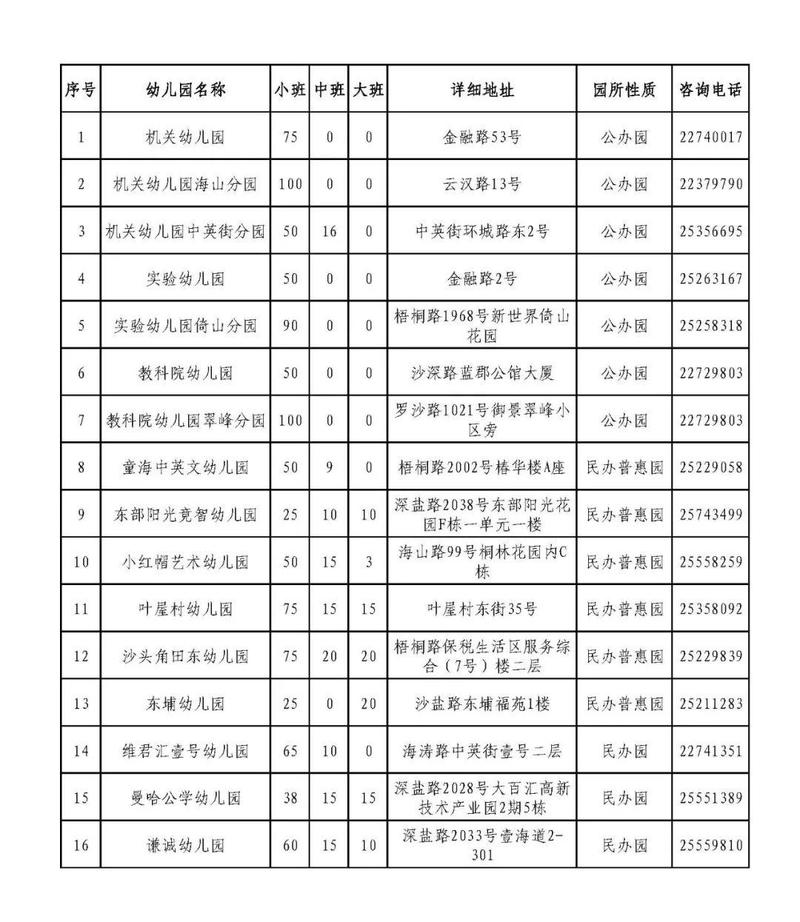 区教育局幼儿园招生咨询电话:0755-25228292。
