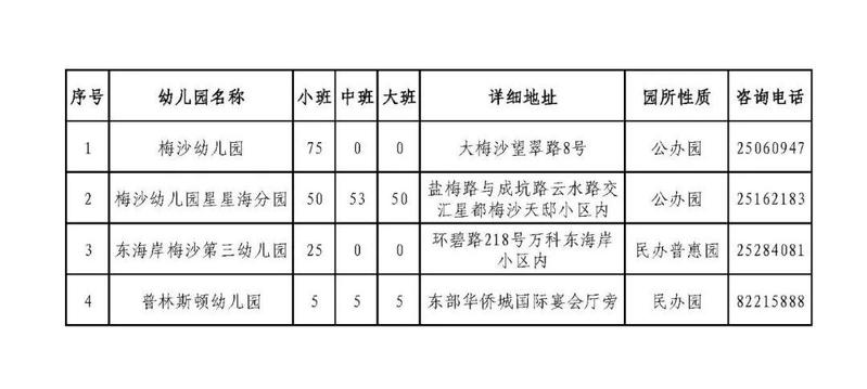 盐田区2021年秋季学期幼儿园实行按片区招生,具体安排如下。