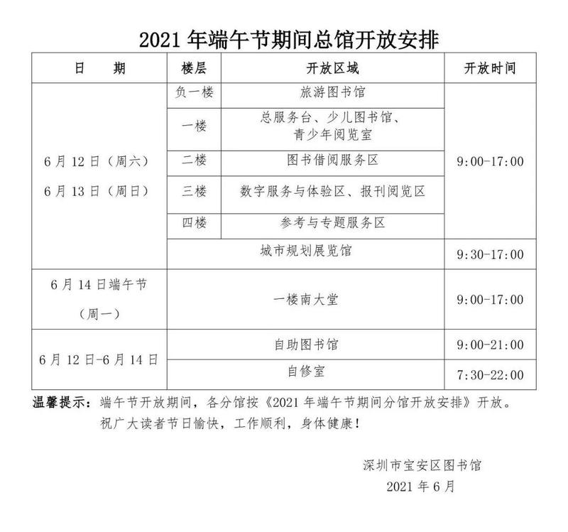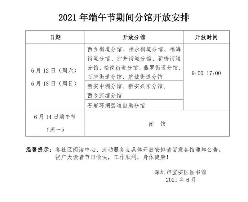 根据《国务院办公厅关于2021年部分节假日安排的通知》,宝安区行政服务大厅端午节放假时间为: