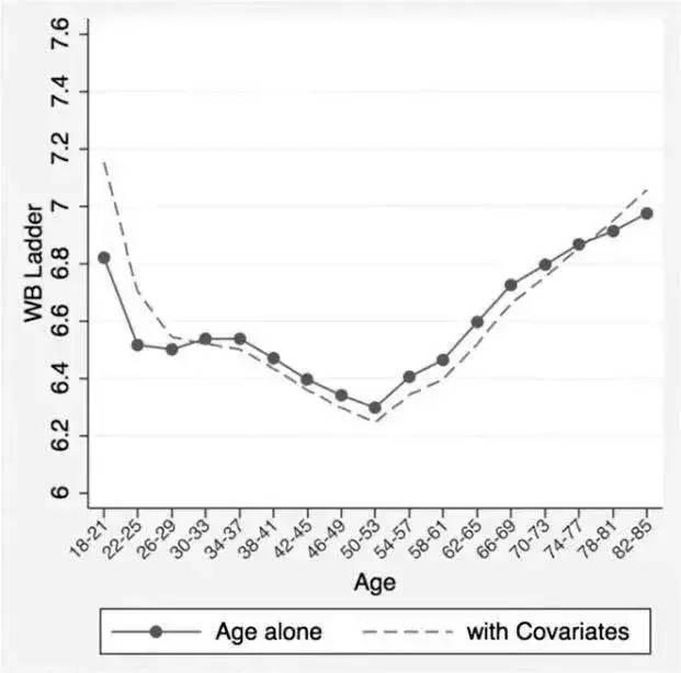 2008年,经济学家奥斯瓦尔德和布兰奇弗劳尔,发布了著名的幸福感U型曲线,从而得出一个结论: