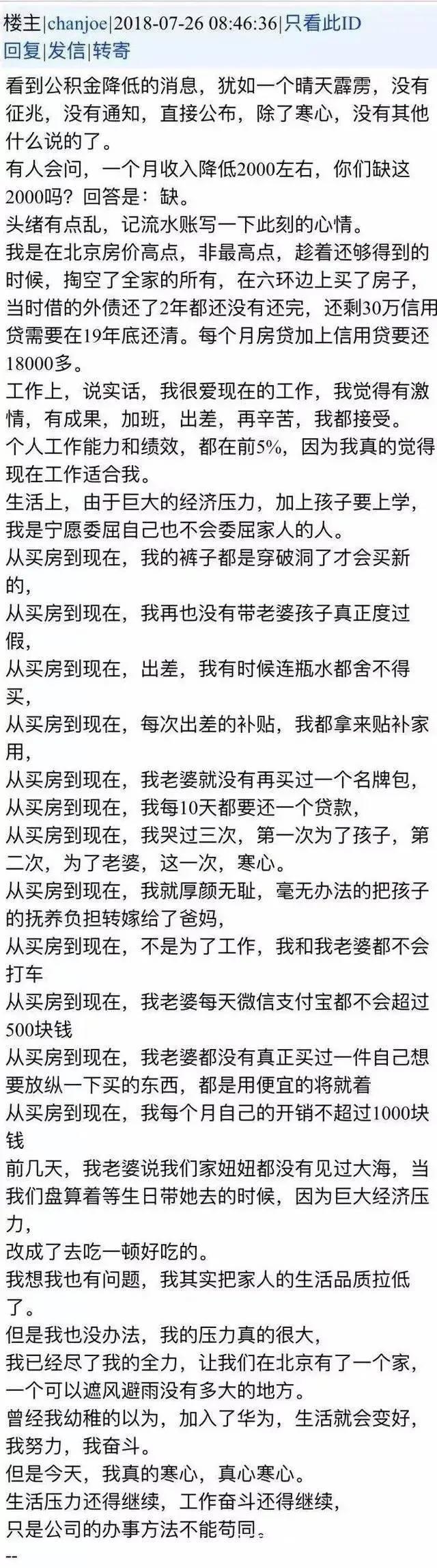 每个月因为公积金调整,让他的收入减少了2000块钱,就这2000块钱让他立刻压力山大。