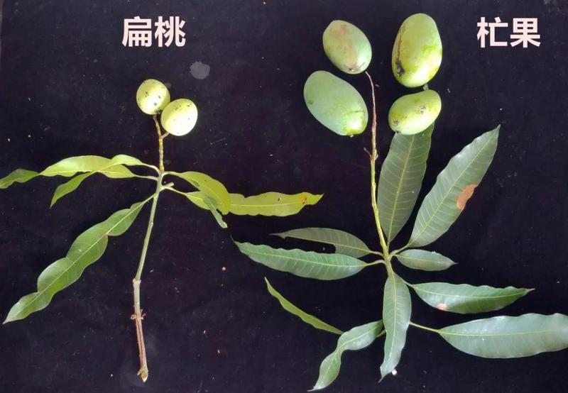 常绿乔木,高10-16米。叶狭长圆形至披针形。果桃形,略压扁,长约5厘米,宽约4厘米,果肉较薄,果核大,斜卵形或菱状卵形,压扁,长约4厘米,宽约2.5厘米,具斜向凹槽,灰白色;种子近肾形,一端较大,子叶不裂。