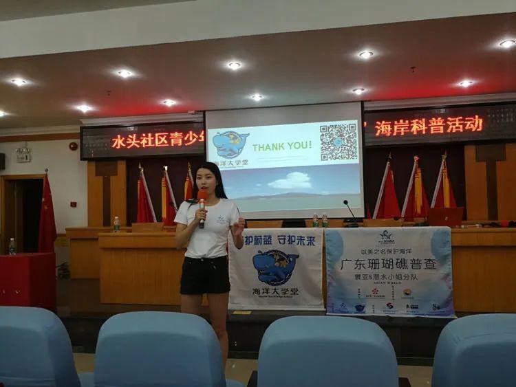不仅如此,何灏浩还作为国际潜水小姐的代表为大鹏新区大鹏办事处水头社区上了一堂“守护蔚蓝”社区海洋科普课程,并前往全国首个珊瑚保育中心、广东海洋大学深圳研究院珊瑚保育中心进行“海龟认养”仪式。