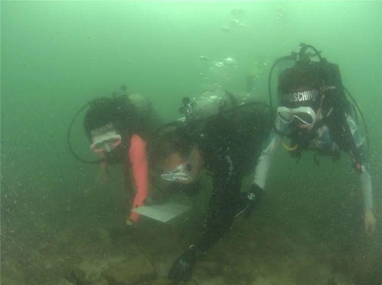 ▲何灏浩(左一)与廖宝林(左二)一起在水下进行珊瑚礁普查。