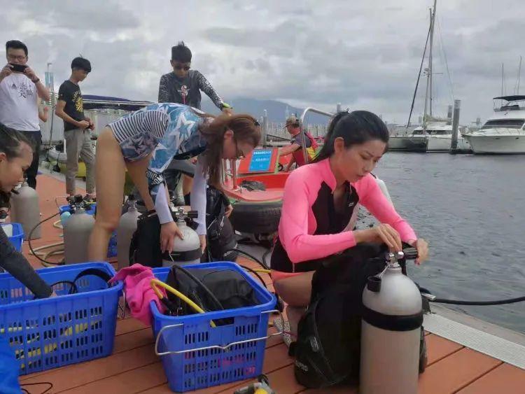 2018年,作为2017国际潜水小姐中国区冠军何灏浩(右四)与当年的国际潜水小姐候选佳丽来深圳参与海洋环保公益活动。