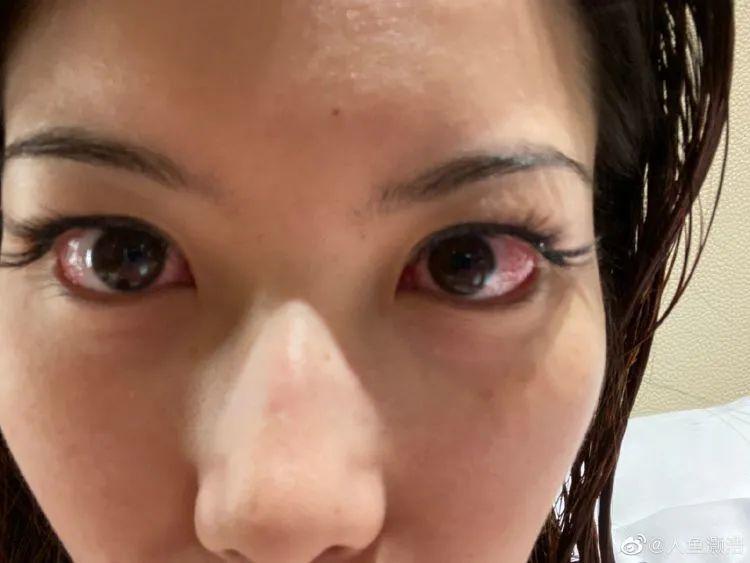 何灏浩因长期入水而眼睛充血。图源 @人鱼灏浩