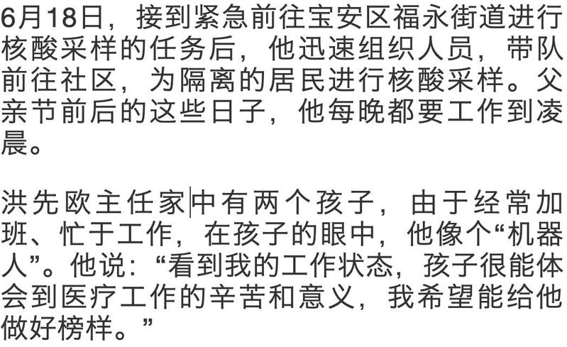 ▲父亲节这一天,宝安区妇幼保健院的医护人员继续为防疫工作坚守。