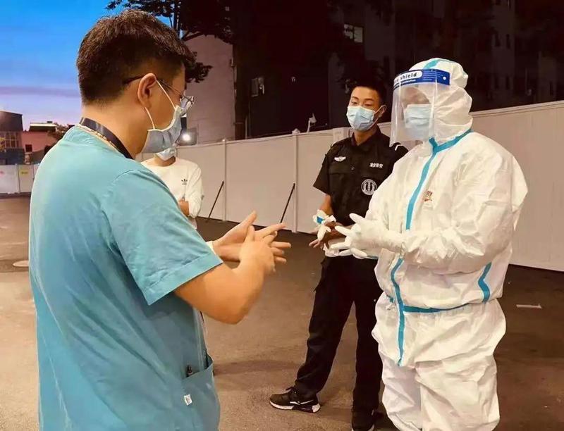 宝安区妇幼保健院应急办的洪先欧主任,负责疫情防控的应急工作,同时也始终在抗疫一线驻点坚守。他负责航城街道核酸检测采样点和其他临时采样点的统筹工作,每天从早忙到晚,已经在现场坚守了半个月。