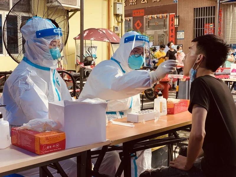 ▲陈水文医生为幼儿进行核酸采样。