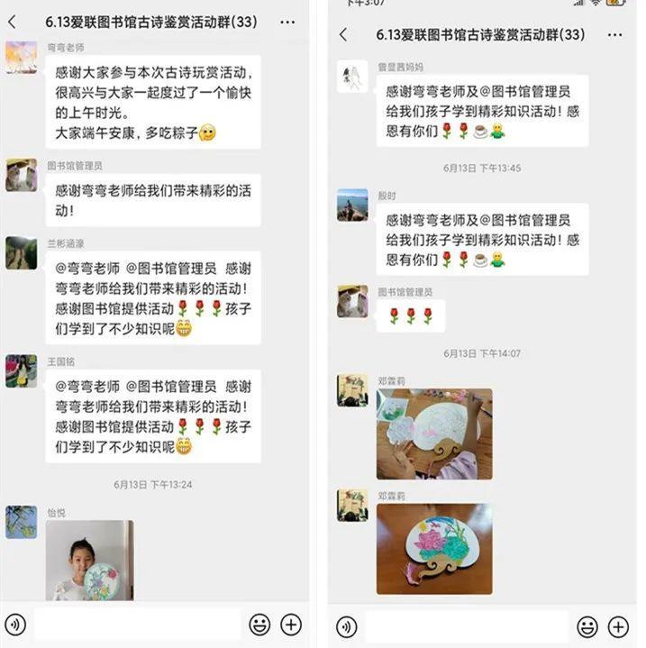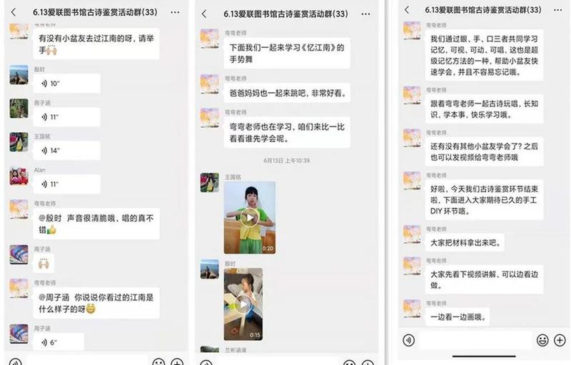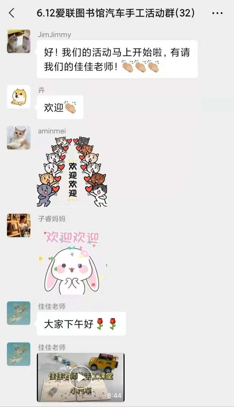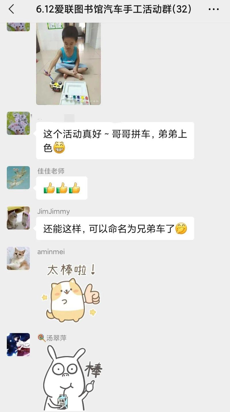 老师将录好的小汽车制作教程发在活动群里,各位小读者与爸爸妈妈一起按照视频中老师教的步骤,一步一步完成了小汽车的组装。热情的馆员小姐姐在群里与大家积极互动,活动群里的气氛十分热闹。