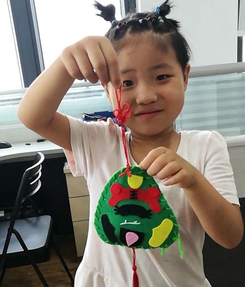 听着那首《甜甜咸咸之歌》,大家完成了手工香囊。可能是这首歌太有趣了,小朋友们忍不住想听它背后的故事,于是汤圆老师又讲了另一个绘本《小粽子,小粽子》。这是一个关于甜粽子和咸粽子争吵的故事......