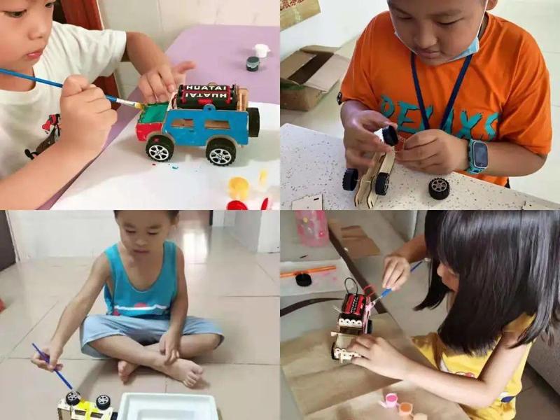 大家的动手能力非常出色,很快就完成的小汽车的组装,接下来就是小读者最喜欢的上色环节啦!快发挥一下想象力,绘制一辆独一无二的小汽车吧!
