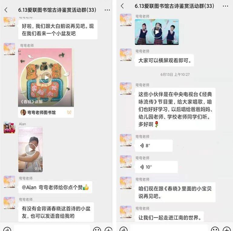 小读者们纷纷发语音与老师互动,稚嫩的童声背起古诗来也别有一番韵味呢。