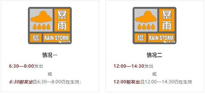 暴雨橙色预警分为2个时段