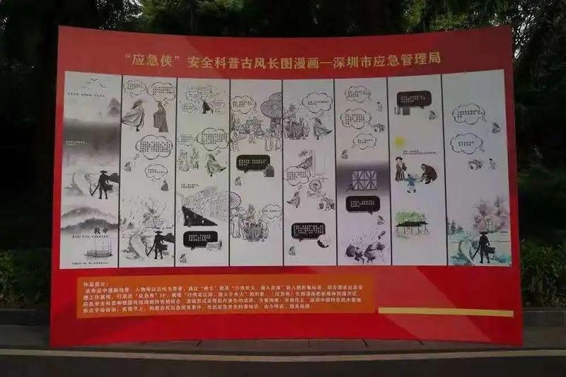 2020年,深圳市应急管理局开设“应急侠客行”科普栏目,创新推出一系列古风主题漫画,打造全国首个古风漫画应急IP——应急侠,通过应急侠“侠义之气”的人物形象,一展闯荡江湖解危救急的精神特质,并科普应急安全知识。漫画一经推出,迅速引爆朋友圈,获得社会各界纷纷点赞。