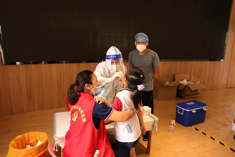 近期,大鹏中心幼儿园党支部安排党员志愿者配合医务工作者给全体师生做核酸检测,坚决落实做好常态化疫情防控。经过大家的努力,幼儿园共完成核酸检测331人次。