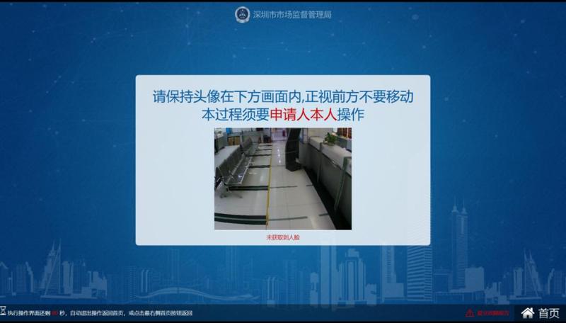 营业执照自助领证机拍照经过后台核实身份,实名认证通过,点击“开始申请”进入商事登记业务申请。
