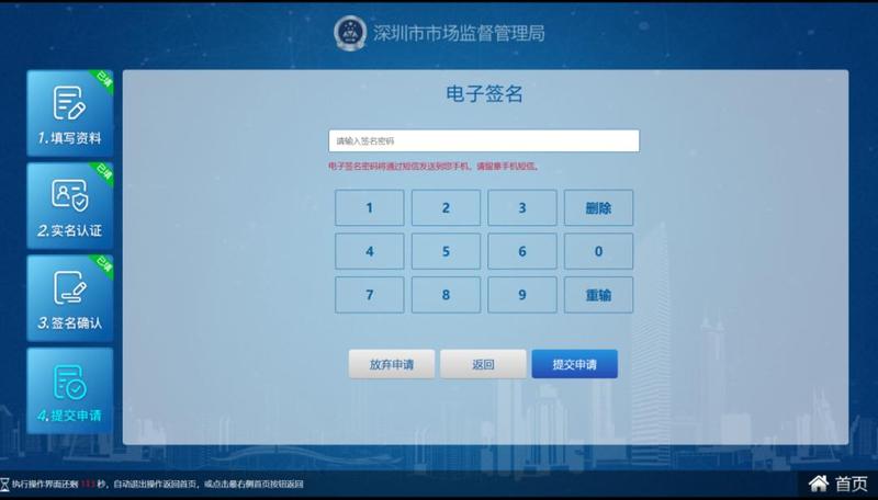 经营者录入手机收到的电子签名密码,点击“提交申请”。