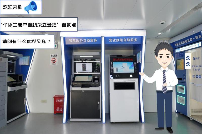 2.“个体工商户设立”自助点全天候24小时开放,群众可随时过来龙岗区24小时自助政务服务区“营业执照自助领证机”办理“个体工商户设立”业务,无需预约无需排队。