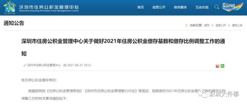 近日,深圳市住房公积金管理中心发出《关于做好2021年住房公积金缴存基数和缴存比例调整工作的通知》。