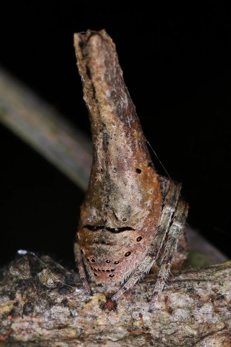 与众不同的无毒高手——妩蛛:基本蜘蛛都有毒,妩蛛没毒怎么捕食猎物呢?织网靠1-3条线,凭借强有力的丝线捉住猎物并缠绕起来后,注入消化液,喝汤。