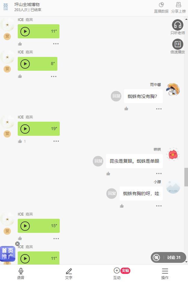 课堂上,观众们听得津津有味,还和冰心老师进行了热烈的互动,蜘蛛有多少只眼睛呢?蜘蛛有没有翅膀呢?蜘蛛与昆虫之间有什么区别?