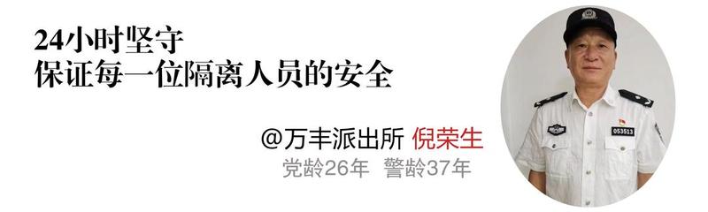 疫情防控常态化后,作为所里的老同志,所领导体恤,“老倪,你就安心在所做好后勤保障工作吧!”我心想那可怎么行,今年我59,能去一线执勤的机会不多了。我是有近30年党龄、近40年警龄的老党员、老公安,在基层待了几十年,这种时候我真坐不住!从4月份开始,我就请缨驻守在隔离酒店负责安保值守工作。