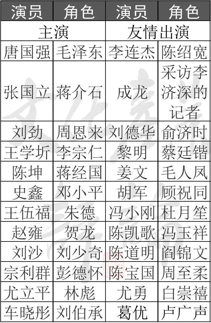 △《建国大业》演员不完全统计表