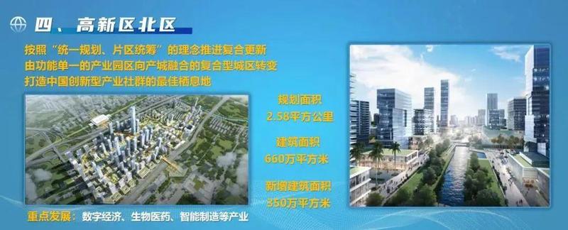 规划占地面积2.58平方公里,按照“统一规划、片区统筹”的理念推进复合更新,由功能单一的产业园区向产城融合的复合型城区转变,重点发展数字经济、生物医药、智能制造等产业。