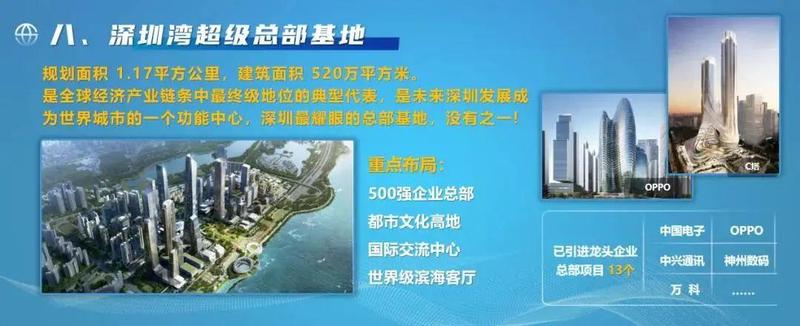 规划占地面积1.17平方公里,重点布局500强企业总部聚集区、都市文化高地、国际交流中心、世界级滨海客厅,打造成为全球经济产业链条中最终级地位的典型代表和深圳打造世界城市功能中心。