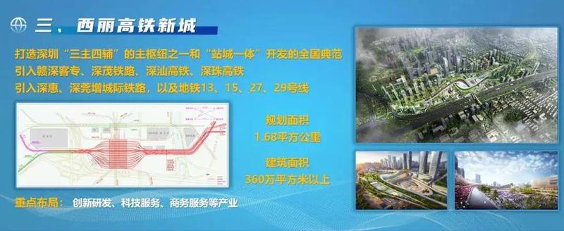 西丽湖国际科教城、深圳湾CBD、西丽高铁新城。