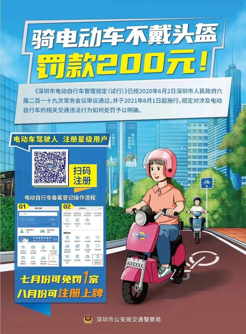2021年8月1日起,骑行电动车未佩戴安全头盔的将根据《深圳市电动自行车管理规定(试行)》处罚200元。
