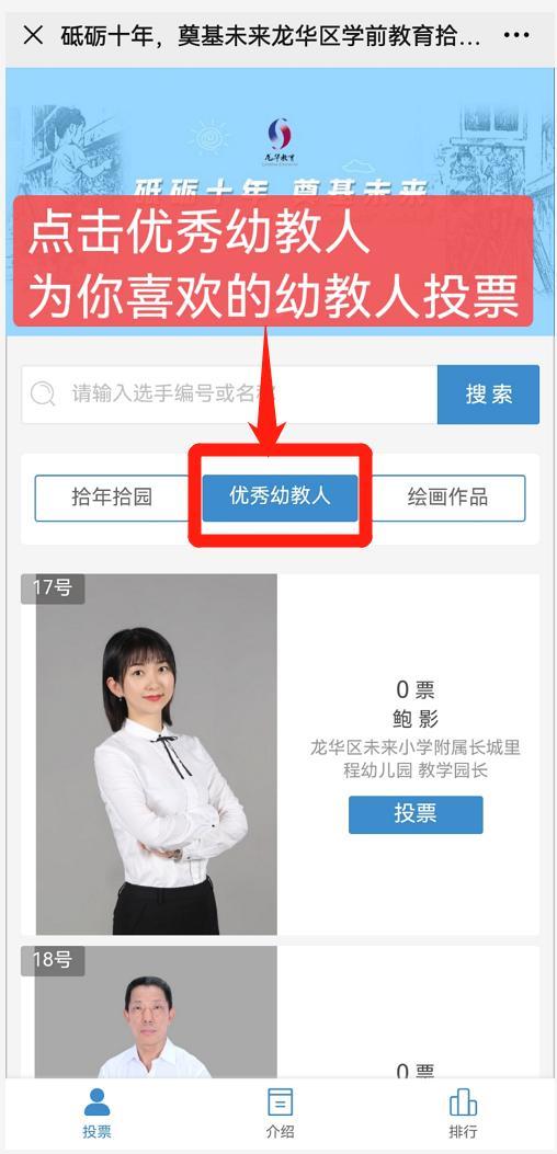 经广泛发动、个人自荐、组织推荐、专家初审,遴选出16所具有特别意义的幼儿园、16位踏实耕耘的幼教人、20幅畅想未来的绘画作品入围网络票选环节,现面向社会进行公众投票。