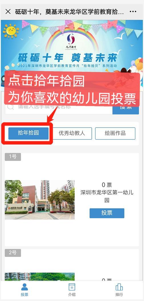 ☛本次投票共设三个项目(拾年拾园、优秀幼教人、绘画作品),每个微信号每天每项可投1-10票,可连续投5天。
