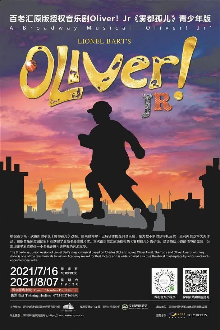 首先推荐的就是本周重磅福利——音乐剧《雾都孤儿》青少版的抢票活动。该剧由百老汇原版授权深圳戏剧英语制作演出,改编自狄更斯的经典小说《雾都孤儿》。7月16日,该剧登陆深圳保利剧院连演两场,读者可以关注“深圳艺文惠”公众号了解抢票详情。