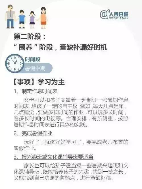 明智的家长已经在假期开始之前,就和孩子一起制定一份合理的时间表,坚持每天做几件有益的事,从而培养几项可以受益终身的好习惯,才是对孩子的一生负责!