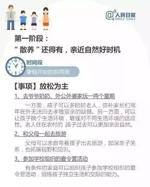 暑假是家庭教育发挥作用的重要时期,家长要与孩子多交流沟通,督促孩子早睡早起,规律作息,与孩子交朋友,教育和培养孩子健康的心理和良好的品行,支持孩子做一些力所能及的家务,营造温馨和谐的家庭氛围: