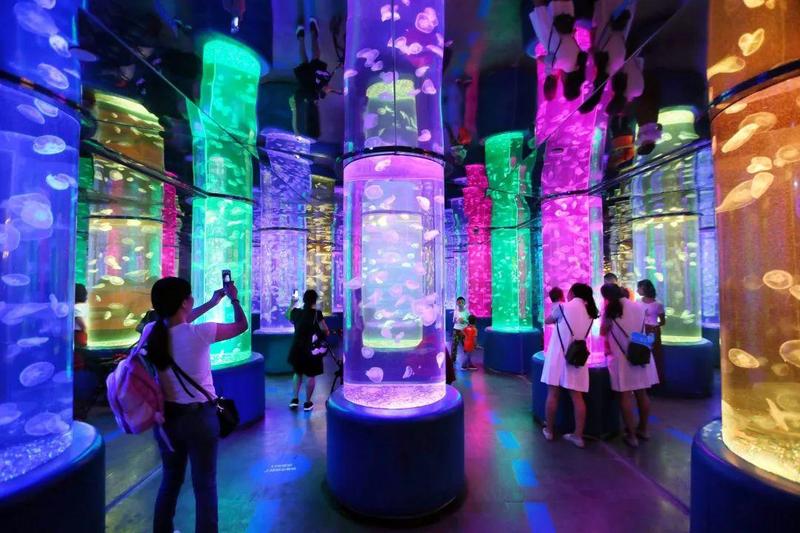 与此同时,景区还推出“街头艺术”点燃激情,精彩节目在动物奇妙夜轮番上演:带着神秘色彩的《美猴王变脸》,让游客目不暇接;惊险刺激的《调虎离山》,快来围观;美人鱼与鲨鱼共舞,邀游客一起共赏……这个夏夜,景区多种海洋小动物更是“萌趣”来袭。海豚、海狮、海豹、水母、护士鲨、蝠鲼、天狗吊、圆燕等海洋动物花式集结,让孩子拥抱蔚蓝海洋。在这里,游客可以尽情欣赏海豚、海狮可爱的身姿,颜值高、技艺棒,感叹它们的无穷魅力;美人鱼在水中展开优美的泳姿,跳起优美的舞蹈……