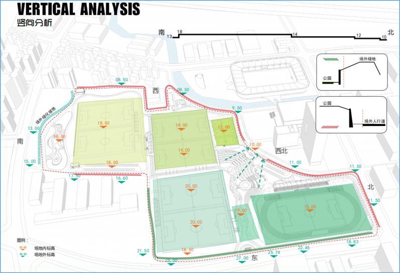 在为社区市民提供体育锻炼和运行休闲保障的同时,足球场的设计如何高标准地达到青少年足球运动员的专业训练和比赛要求是项目设计难点之三。