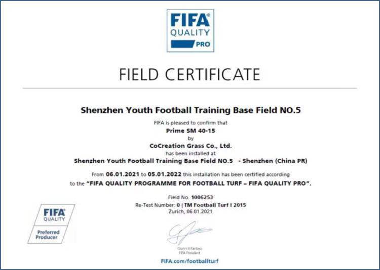 国际足联FIFA Quality Pro认证证书