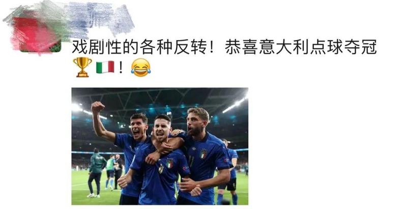 意大利点球大战中3-2击败英格兰