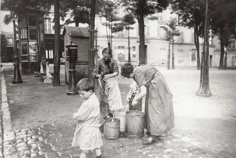 Historical photograph, Montmartre, Women at the fountain, Place du Tertre, 1900