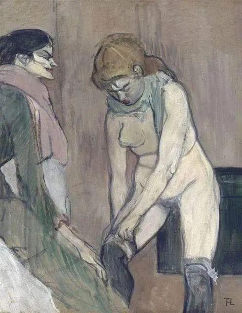 劳特雷克《Femme tirant son bas》布面油画,58 x 46厘米,1894