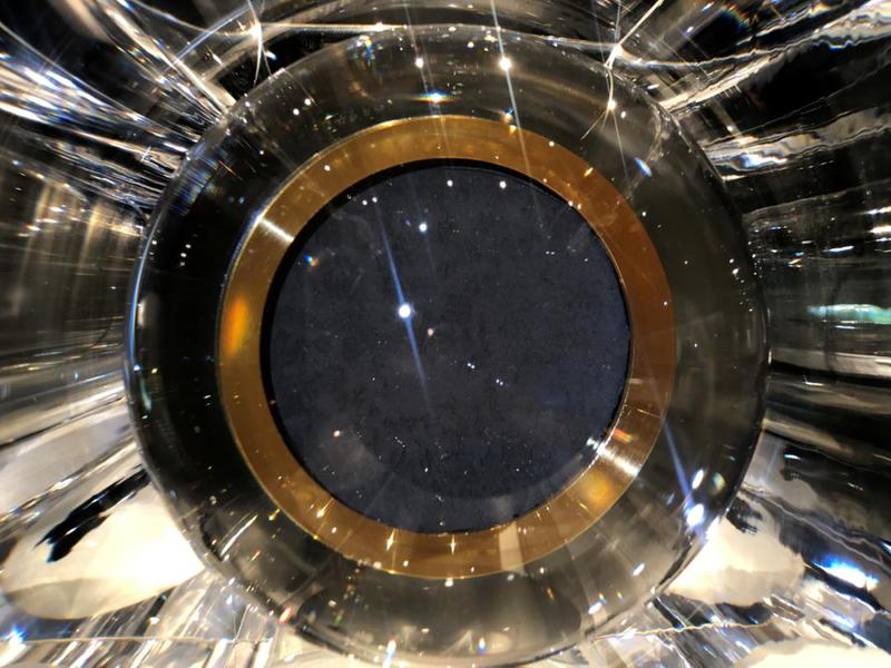 这几日,不少前去观展的观众却表示,因隔着展柜,距离较远,盛放在“水晶尊”里的月壤很难被看清楚。为此,《深圳特区报》紧急联动深圳博物馆,深圳博物馆工作人员于7月12日下午,打开展柜,取出“水晶尊”中盛放月壤的球体,拍摄月壤高清大图,以飨读者。