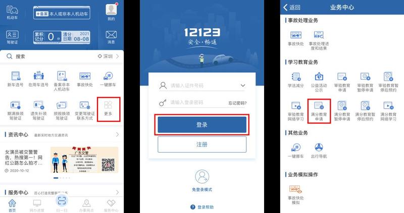 登录“交通安全综合服务管理平台”(gd.122.gov.cn)注册登录个人账号,在“业务办理”中选择“满分教育申请”,填写相关资料进行申请。