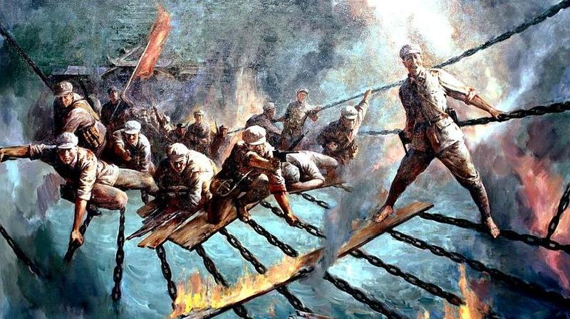 “红军不怕远征难,万水千山只等闲。五岭逶迤腾细浪,乌蒙磅礴走泥丸。金沙水拍云崖暖,大渡桥横铁索寒。更喜岷山千里雪,三军过后尽开颜。”