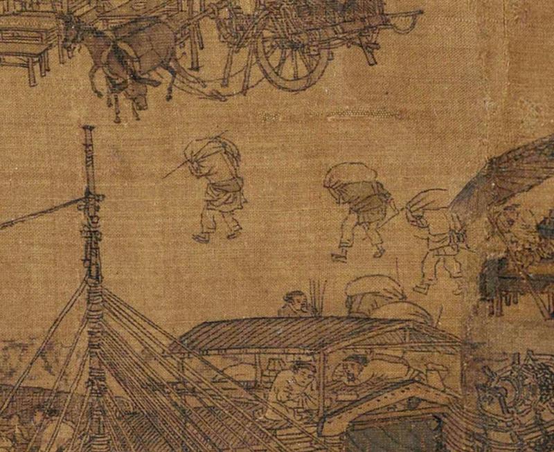 细微的一笔,普通人看画时根本难以觉察,去掉也不一定影响人们对这个场景的理解。可只有真正走到码头,观察过工人日常生活的人,才能画得出这“无足轻重”却又无比重要的一笔,才能了解汴京的民风民情,从而留给后世如此真实可信、丰富生动的清明上河图。