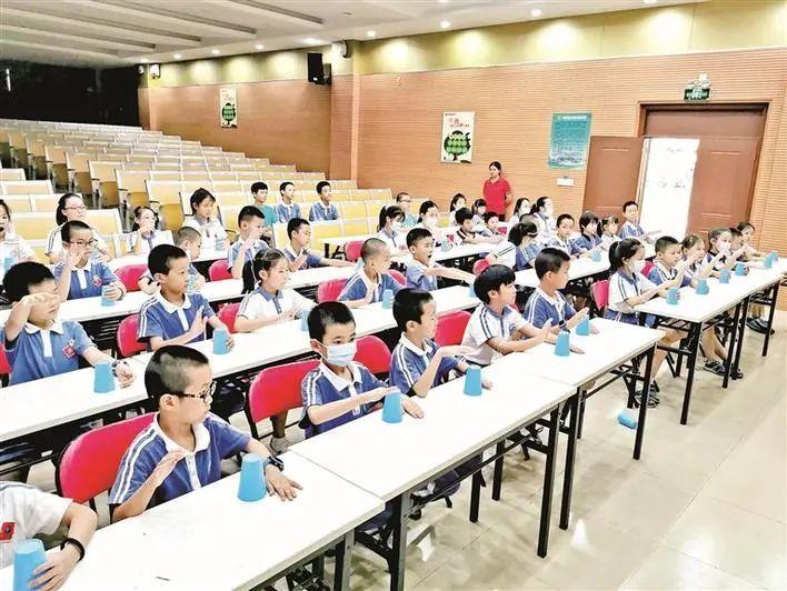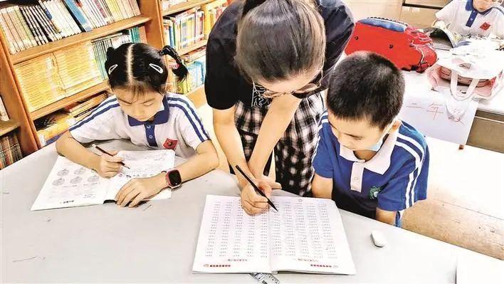 松岗实验学校则在暑期托管期间,将跳绳、跑操、简笔画、硬笔书法以及心理健康教育、电脑编程、英语绘本阅读等特色课程体验,纳入托管课程。