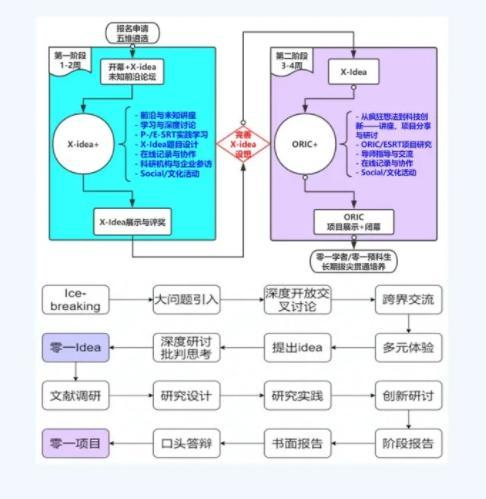 在暑期学校前两周,以清华大学钱学森班特色培养项目X-idea(交叉创新挑战性问题)为主线,邀请各领域院士及顶尖专家学者,开展重大挑战性问题研讨、前沿与未知讲座、分组深度讨论、SRT(学生科研训练)、顶尖科研机构调研参访(华为、华大基因、腾讯等)、成果展示报告等活动,促进学生进入前沿交叉领域开展探究,在学习、交流与研究过程中实现顶尖师生匹配,开展相关领域知识精深学习、科研实践能力训练与创新思维培养,并提出具有突出原创性与可行性的科研想法,设计科研与自主创新课题。