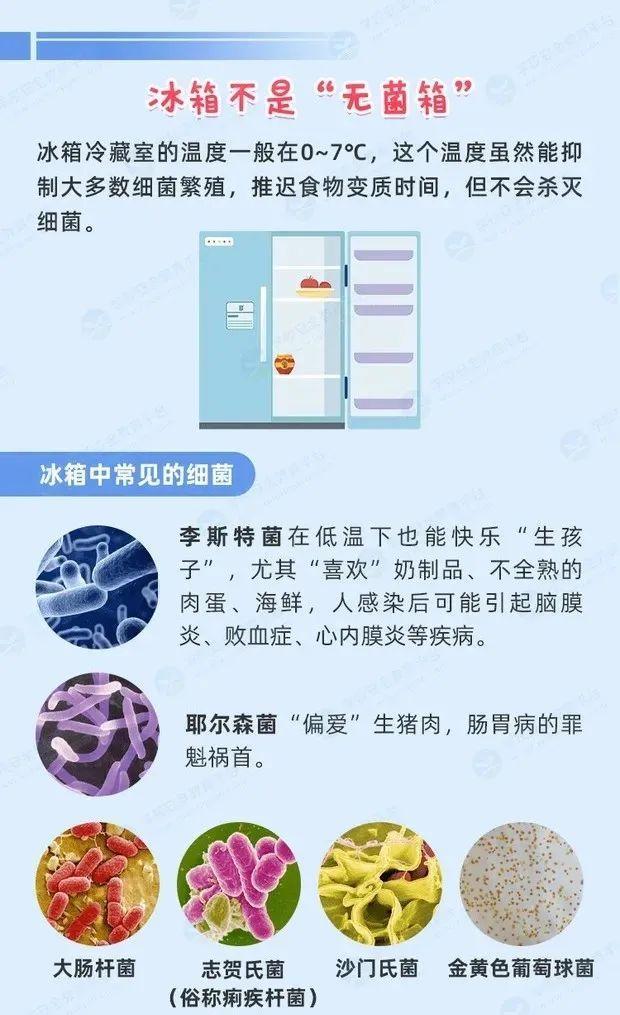 此外,冰箱中还可能存在大肠杆菌、金黄色葡萄球菌、沙门氏菌等细菌。
